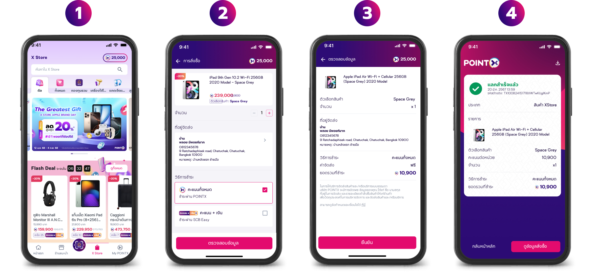 b หากแลกด้วยคะแนน + เงิน ลูกค้าจะไม่สามารถเลือกที่มาของคะแนนได้ และลูกค้าจะต้องลงทะเบียนแอป POINTX ผ่านแอป SCB EASY