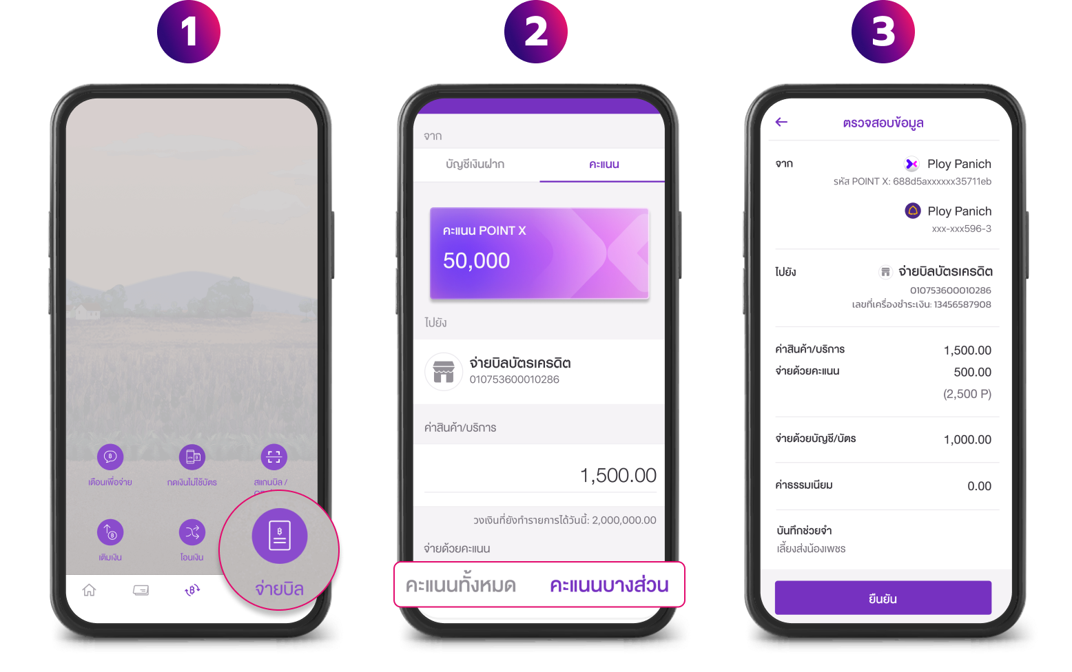 การตรวจสอบคะแนน POINTX จากบัตรเครดิต