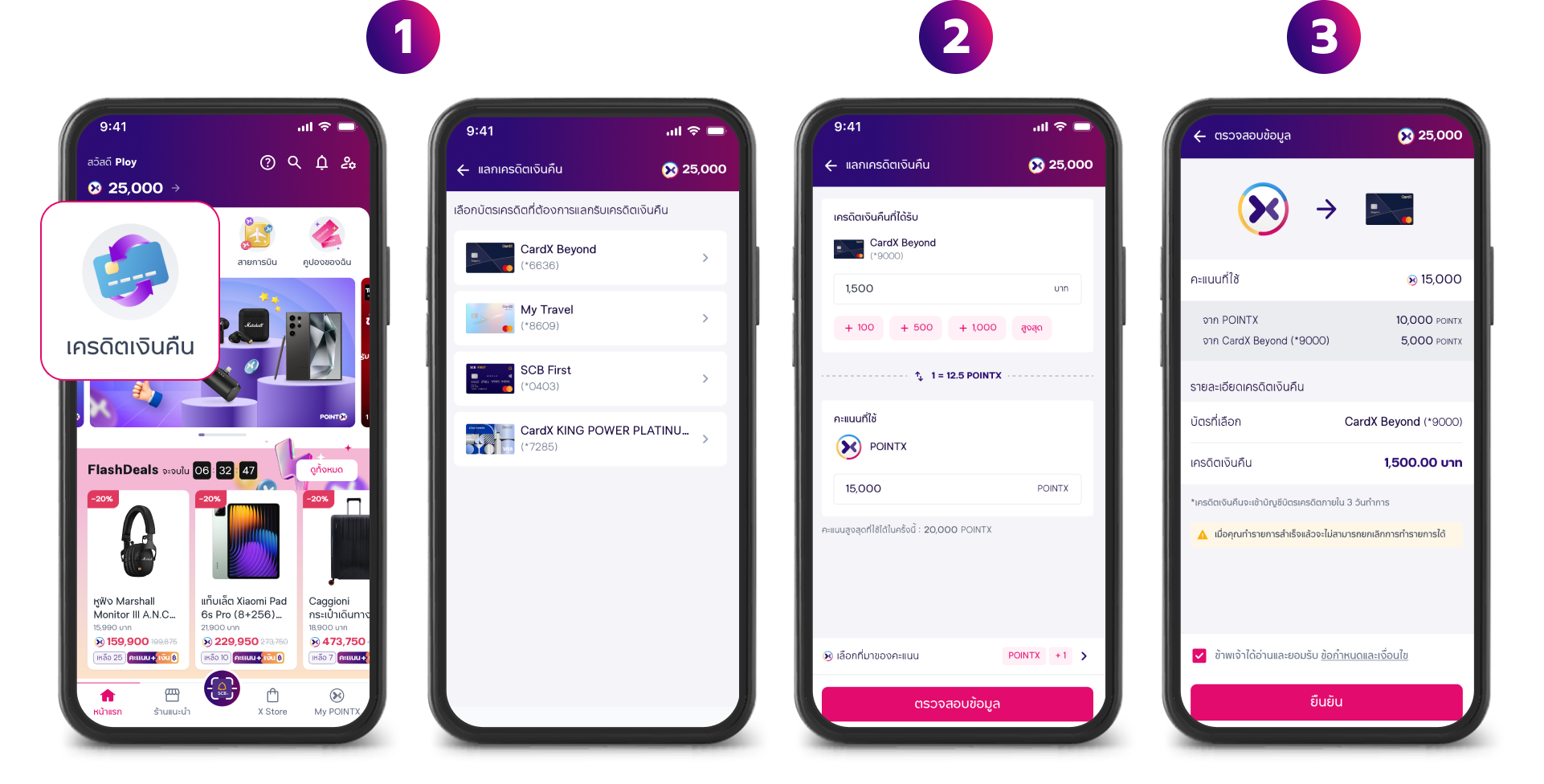 *ลูกค้าเลือกคะแนนได้จาก POINTX ที่ได้รับจากกิจกรรมอื่นๆ รวมกับ POINTX จากบัตรเครดิตได้อีกไม่เกิน 2 ใบ
