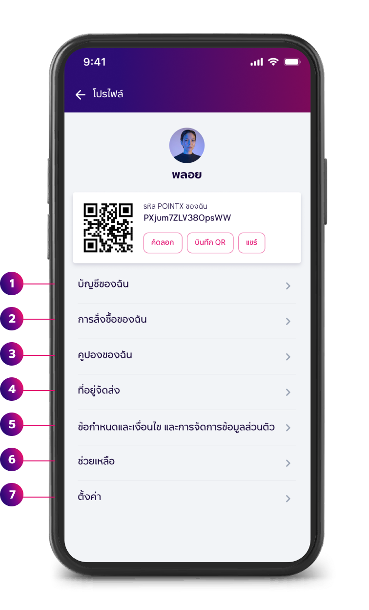 7. ตั้งค่า: ตั้งค่าเกี่ยวกับการใช้งานแอปพลิเคชัน POINTX